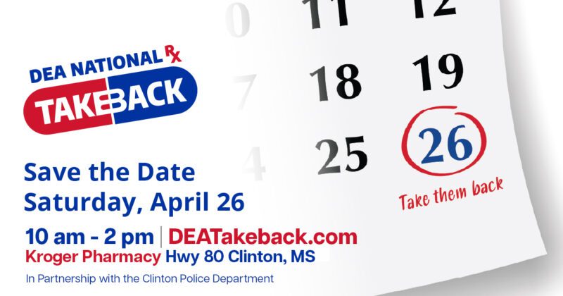On Saturday, April 26, from 10 a.m. to 2 p.m., the Clinton Police Department and the Drug Enforcement Administration will host DEA’s National Prescription Drug Take Back Day at locations across the country. DEA and its partners will collect tablets, capsules, patches, and other solid forms of prescription drugs.