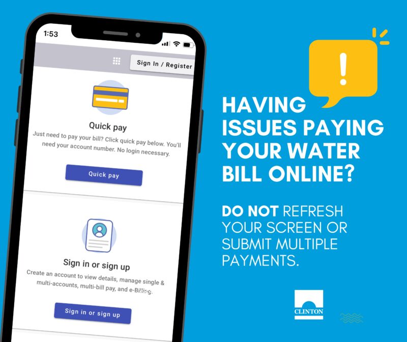 If you encounter technical difficulties while paying your water bill online, please avoid refreshing the page or submitting your payment multiple times. Doing so may result in duplicate charges.